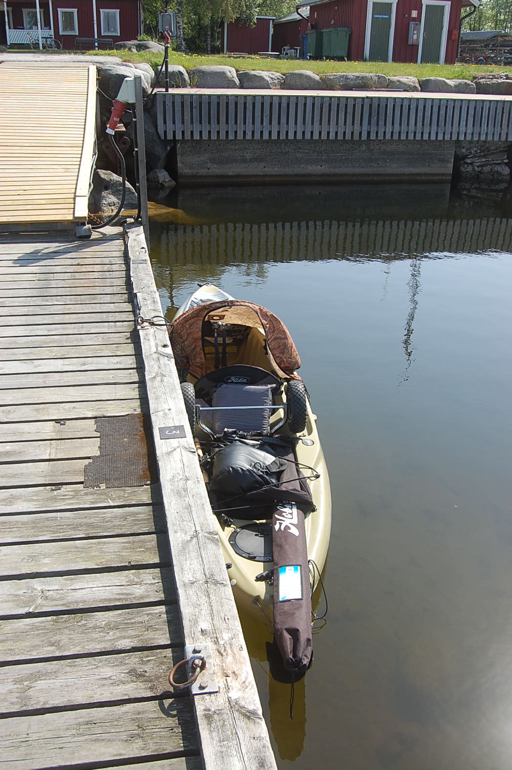 På morgonen då Ingmar går till duschen kommer en kajak med ”trampmaskin” inglidande. Han tänker att det är väl en galen tysk, dom brukar ha den där typen av farkoster. Men det visade sig vara en tvättäkta norrlänning, Jård Modén, en man med skepparkrans och pigga ögon. Ingen båterfarenhet sen tidigare. Nu i år var han på båtmässan i Stockholm och föll för en Hobie kajak med tramp-paddel maskin, segel och även hjul. Han tänkte att den får man väl paddla hem. Sagt och gjort. Han cyklar till Stockholm 115 mil på 10 dagar. Kvitterar ut kajaken och börjar återfärden. Han ska längre än vi då han ska en bit uppför Lule älv också. Just denna morgon har han varit igång i 22 timmar. ”Det var ju så vackert i dimman på natten”.