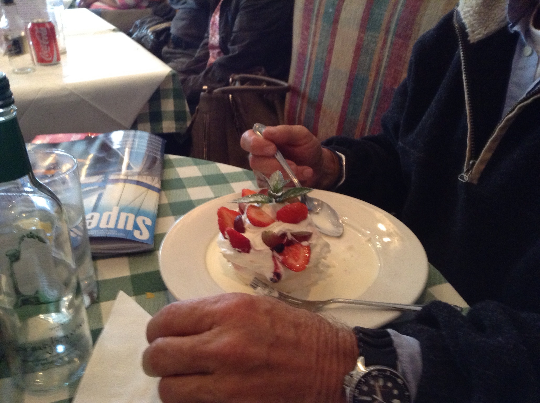 Lasse, Janne och jag scoutade runt i staden i dag på eftermiddagen i jakt på slang till värmesystemet, bankomat, tvättinrättning, tidningar m.m. Lunch på sedvanligt trång, trevlig engelsk servering med förfärlig inredning. Lasse fick en riktigt smaskig överarbetad marängefterrätt. Detta är en kulinarisk huvudort!