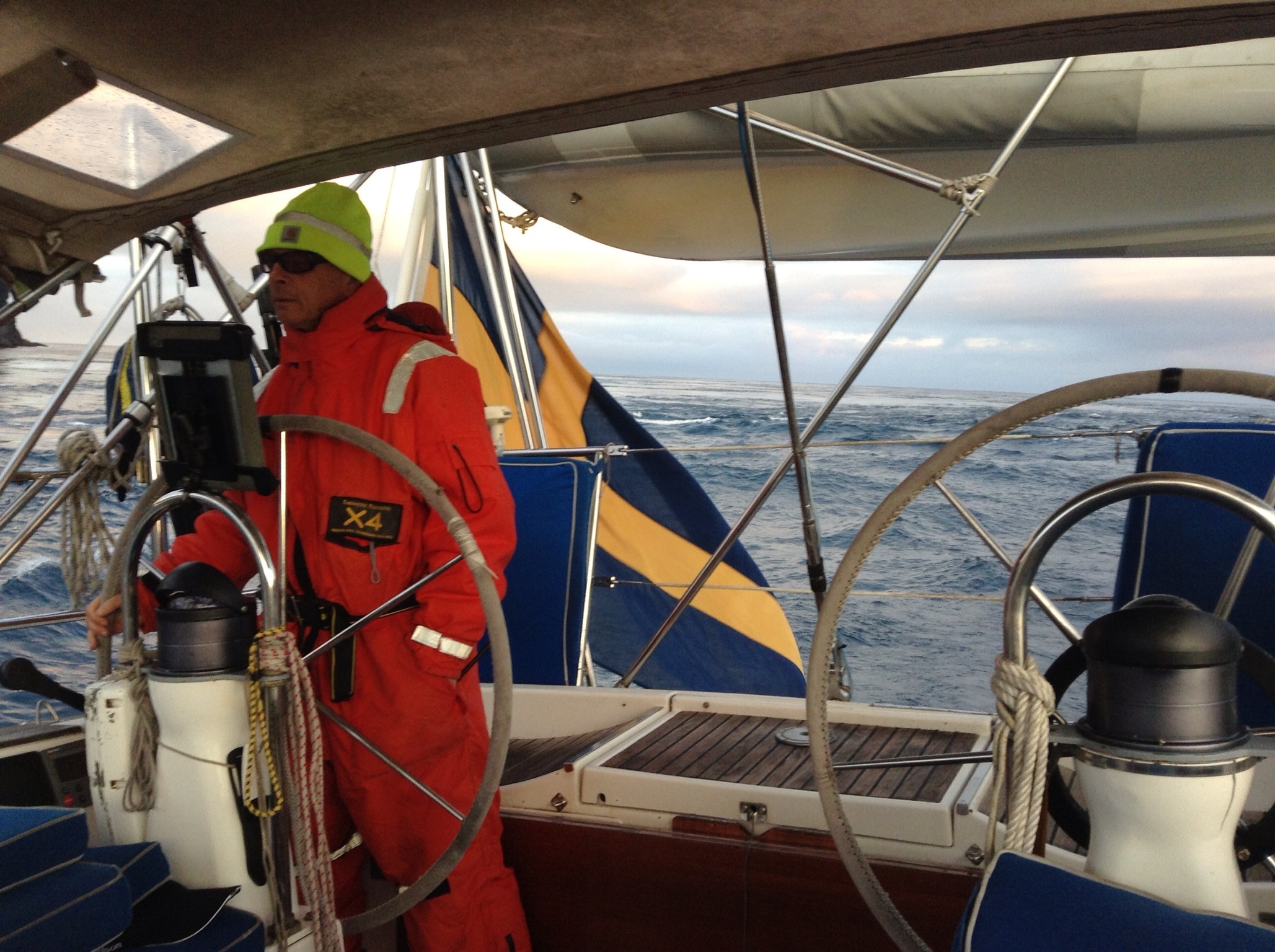 Seglingen från Vestmannaöarna blev lättsam med lagom vind från rätt håll, och de tre dygn det tog har runnit undan med vanliga rutiner. Man kanske inte älskar att bli väckt klockan tre på natten för att klä på sig fyra lager kläder, flytväst, mössa, vantar och ge sig upp i sittbrunnen för att avlösa de frusna kamraterna som suttit där i tre timmar. Men belöningen är att uppleva havet vid alla tidpunkter på dygnet. Stjärnhimlen, vind, småprat, kontemplation. Härligt att komma ner i värmen och den egna kojen igen efter några timmar.