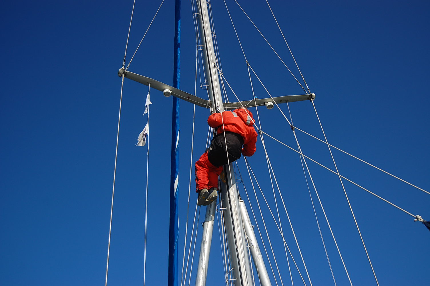 27 MajPinig natt med kuling hela natten som fortsätter nästa dag. Alla klär på sig alla kläder vi har plus flytvästar och livlinor. Motor + revad stor ut ur Öergrundsgrepen i kuling rätt i nosen. Sol och kallt. Vinden är som stålplåt men vi har gott skydd bakom Jennifers sprayhood och vindgardiner runt sittbrunnen. Tryggt och gott men kallt. Efter fyrön Björn halvvind in till lotsplatsen Bönan norr om Gävle. Oerhört inttresserad lokalbefolkning, och delar av besättningen åker med lotsbåt ut och hämtar en lots från ett fartyg. Härligt att få vara en del i det marina samhället.