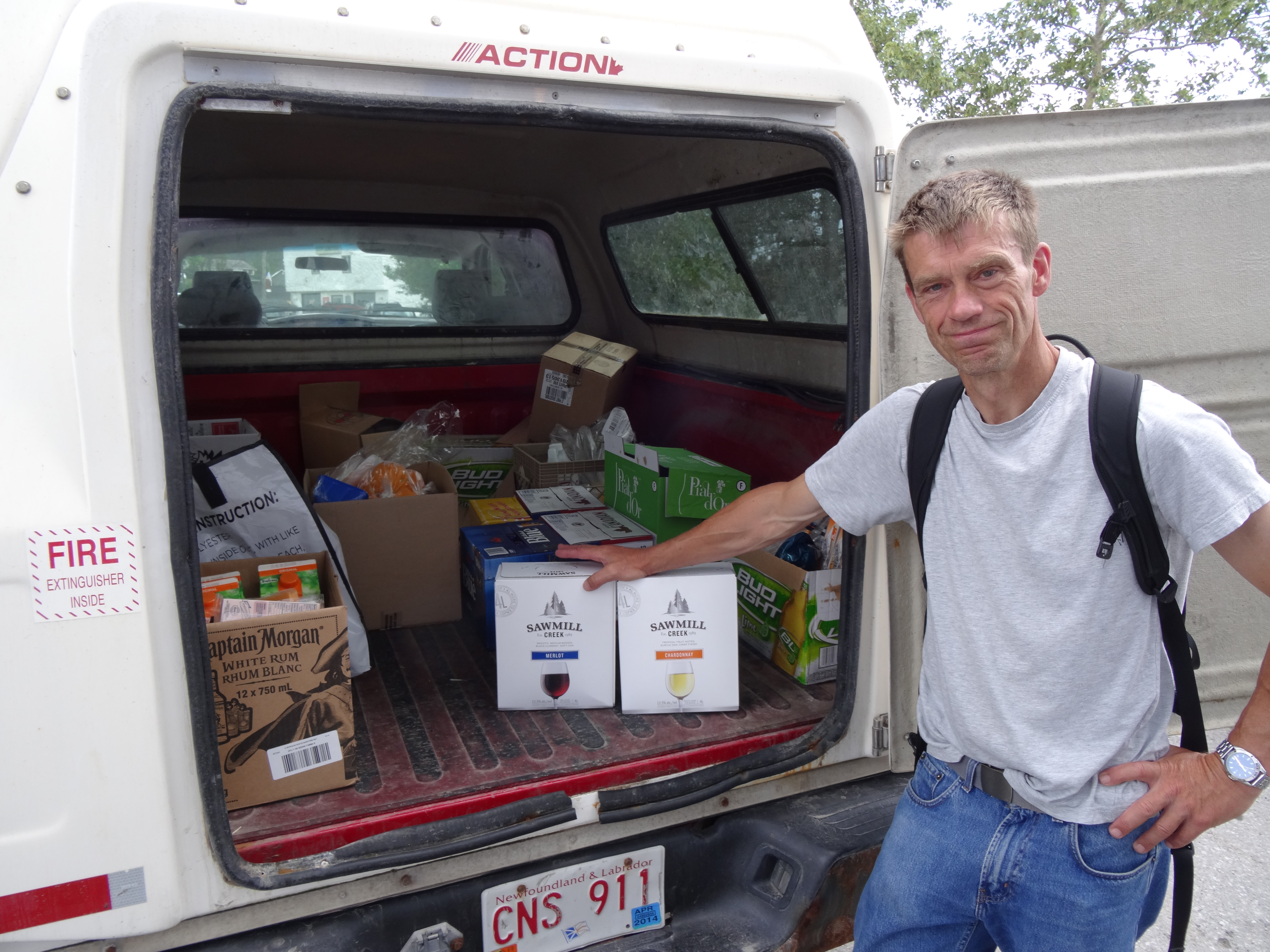 12 AugIngmar låg och trynade, PO likaså, medan Paula, Anki, Lars, Dallas o Per planerade dagens topptur till Gros Morne. Färja över fjorden till väntande taxi till trailen.