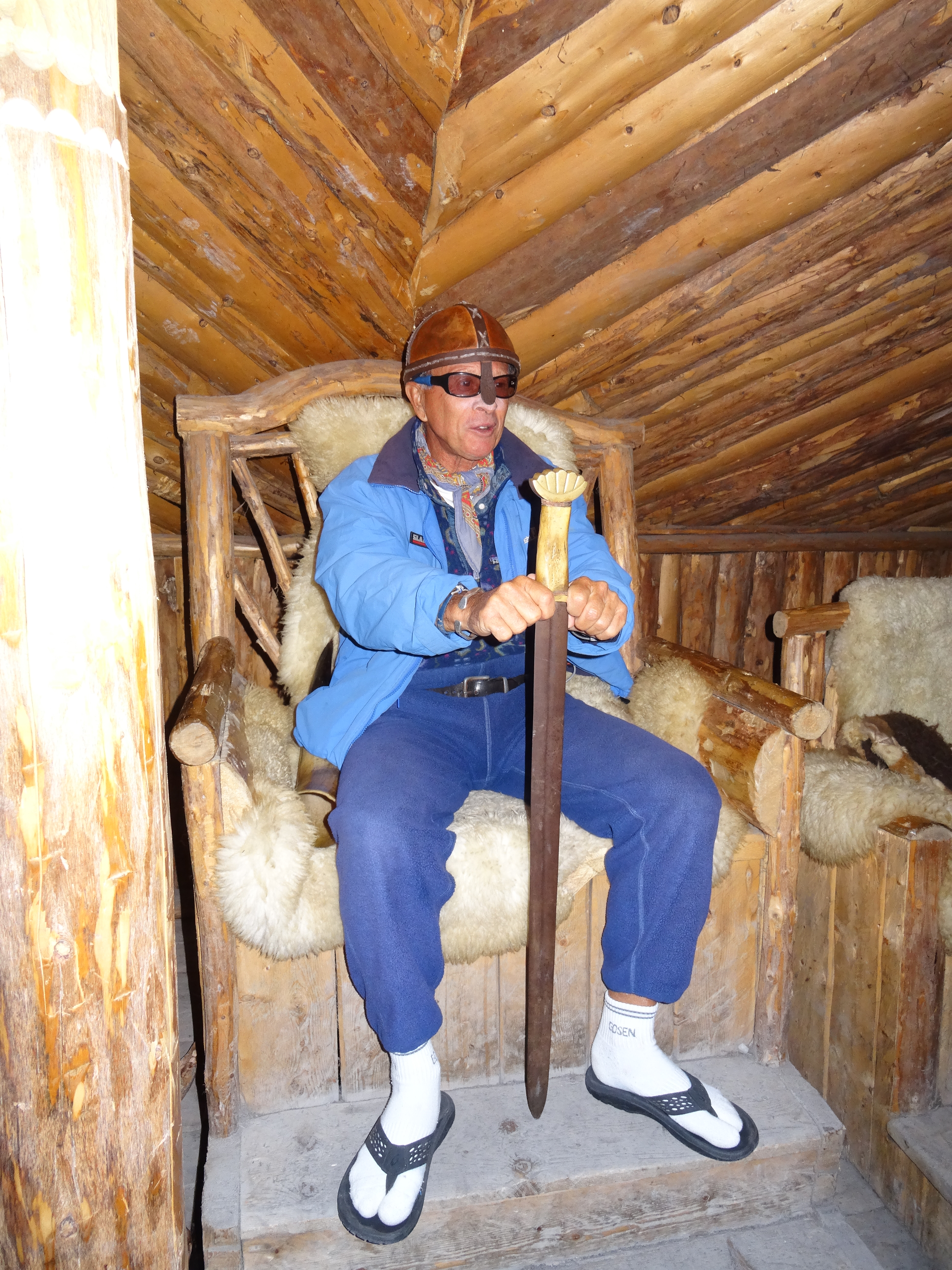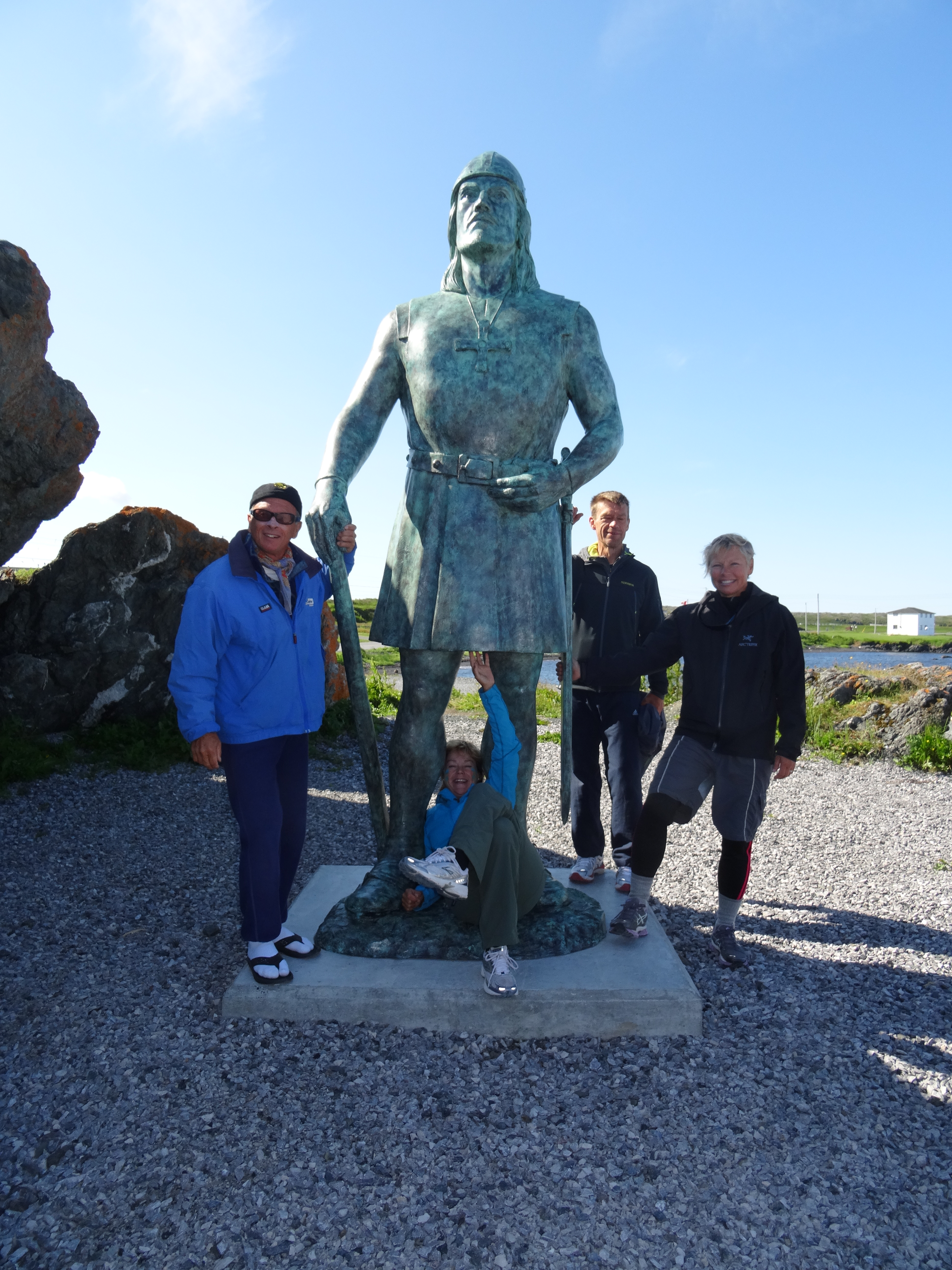 PO som är vår ”vikingaexpert”, påläst och kunnig, har glidit runt här och njutit och besättningen passar på att bli fotograferad vid en vikingastaty.