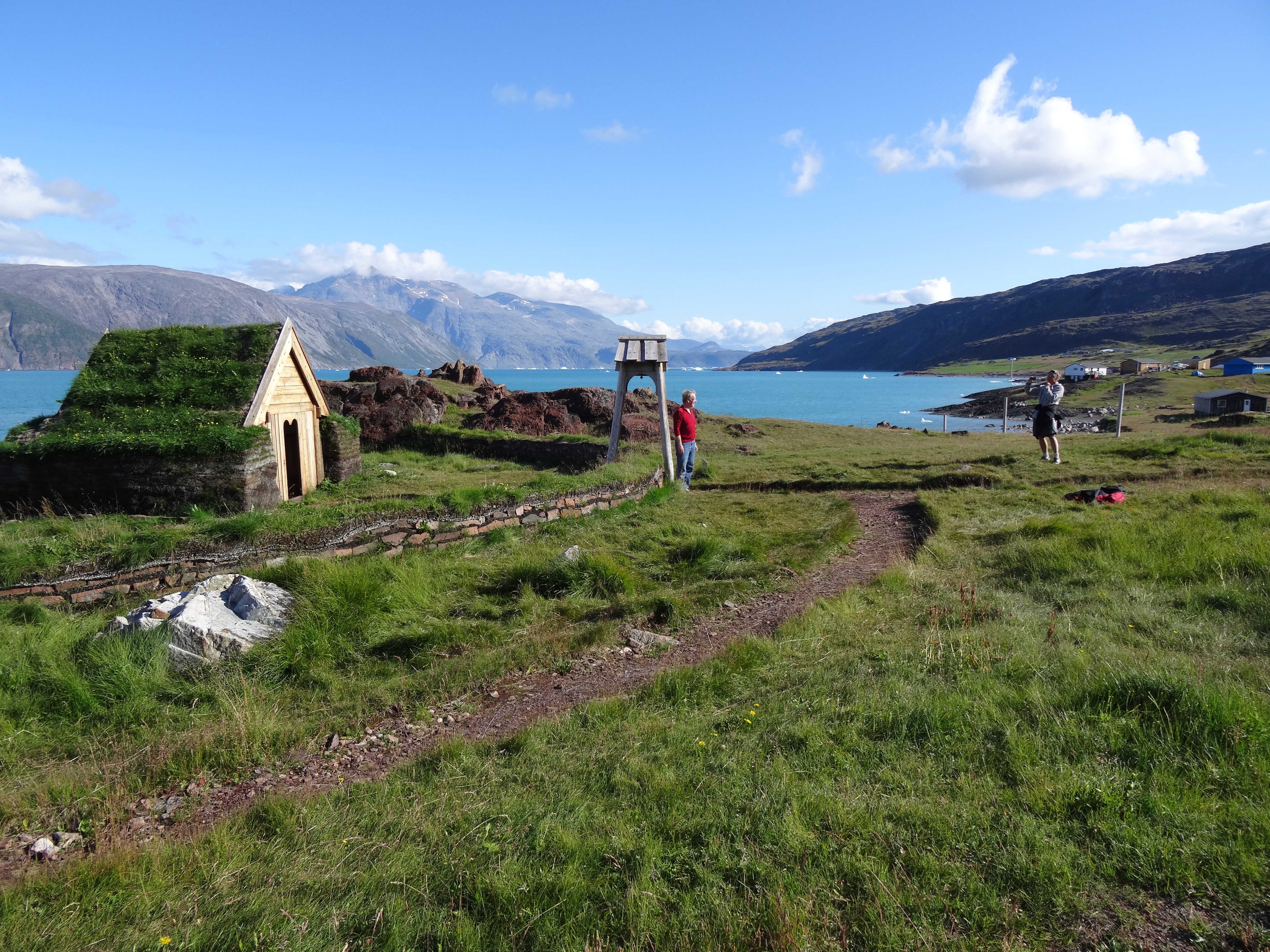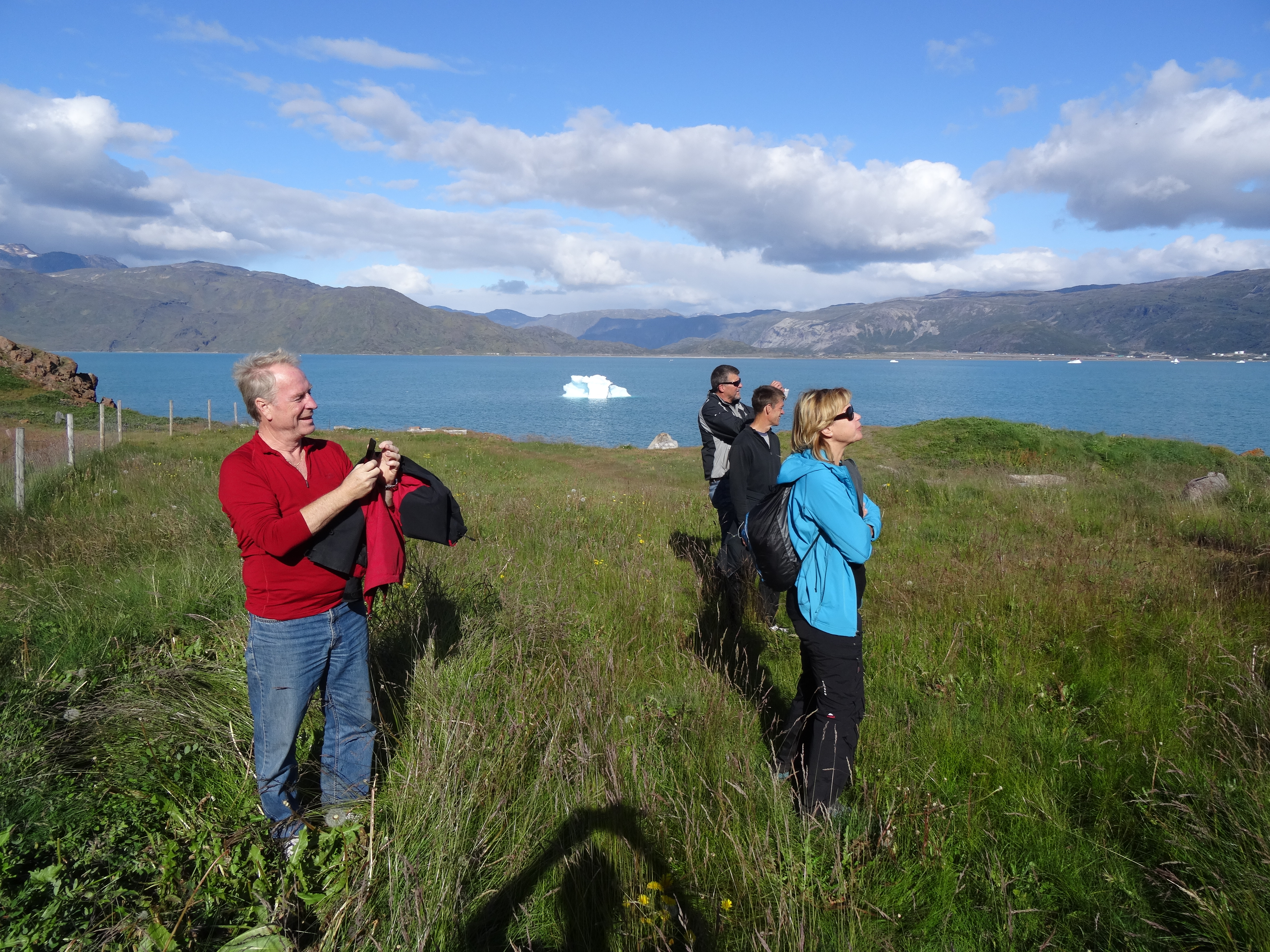 23 AugVi är åter i Qaqartog efter en två dagars ”expedition” längst in i grannfjorden norrut. Stor tur med vädret som bjuder sol och svaga vindar. Isberg, isberg och isberg. Fantastiska naturscenerier och harmoniskt liv ombord på Jennifer som ”tuffar fram ” för motor. Första dagen angjorde vi Brattalid, ett vikingaboställe där Erik den Röde och sedermera hans son Leif Eriksson slog ner sin bopålar. Leif Erikssons fru Tjohilde anlade en liten kyrka här som har grävts ut och som är en ”helig plats” för de som är livligt intresserade av vikingarnas historia. PO är salig när han vandrar runt på platsen.