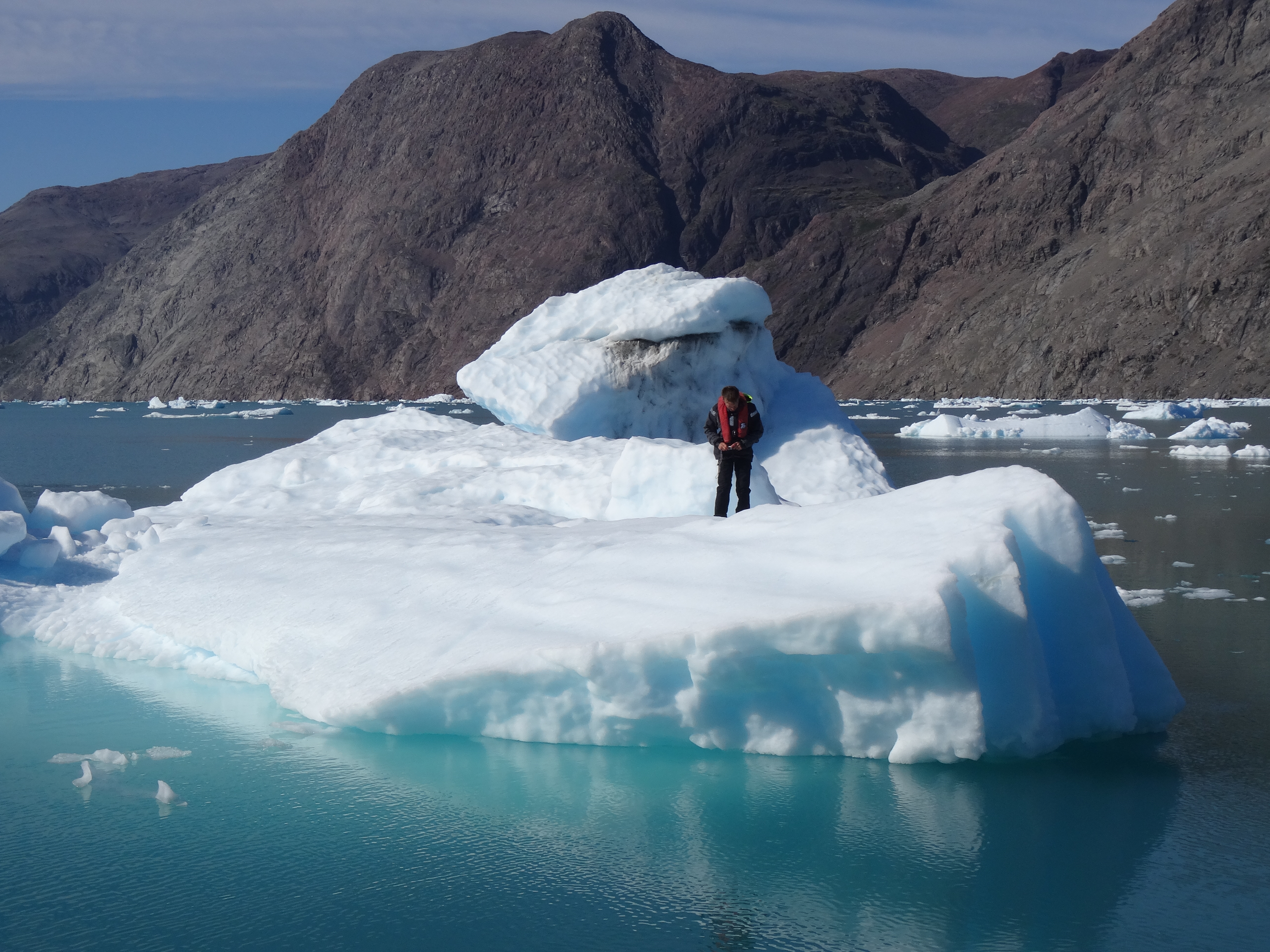 Dag två färd in till Qorqup glaciären. Kom inte riktigt ända intill pga mycket is men upplevde naturens storhet och fick mycket fina bilder. Per sattes iland på ett isflak (berg?) för foto av båten. Beviljades återkomst till båten med hjälp av litet mutor.